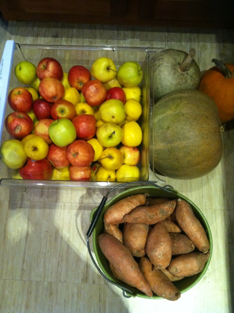 We baked all day long. Tomorrow, we will blend the ingredients in the fridge into sauce.