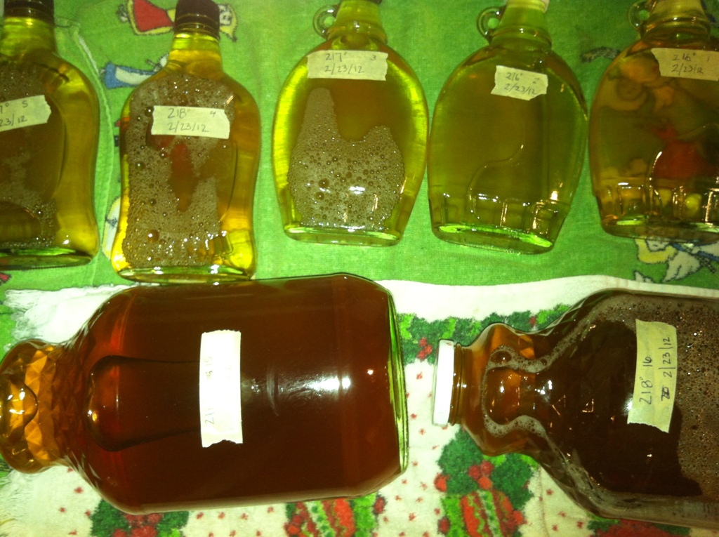 From approx. 100 gallons of sap, we have over 1.8 gallons of syrup. Final cooking was done in two kitchens, Andy’s and Evelyn’s. Now, onto dinner and dancing!!