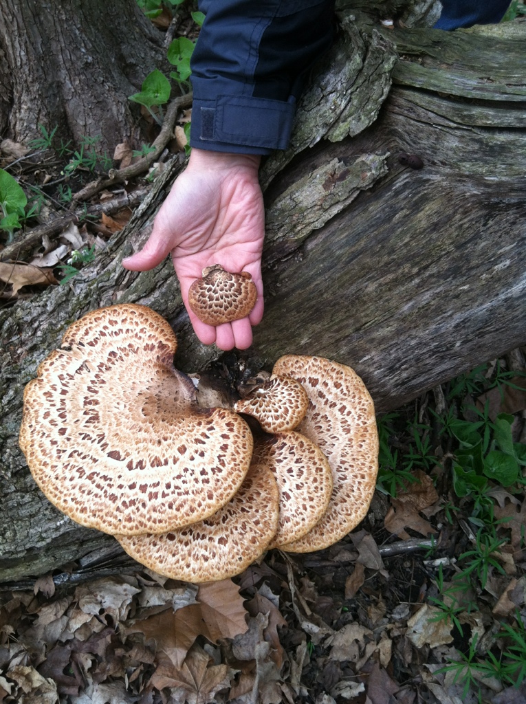 A non-edible Mushroom: Dryad’s Saddle, held by our friend Sam Landis