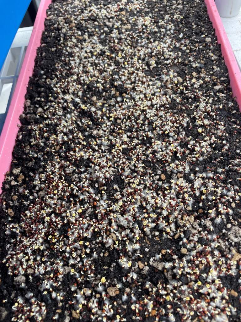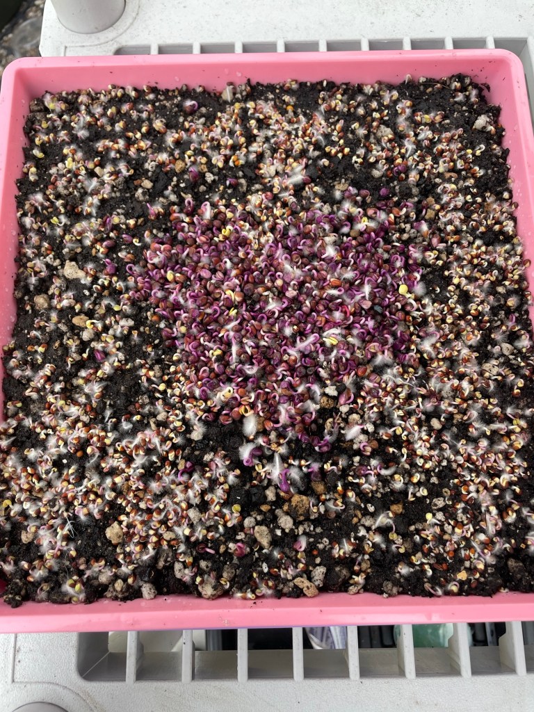 All four of these trays were started on 5/18, and I hope that they are ready for Saturday’s event, although it’s quite questionable if the beets will be ready 😄. For now they’re still weighted, meaning that there’s a tray on top of the soil with weights on the tray so they can send down roots before they send up greens.